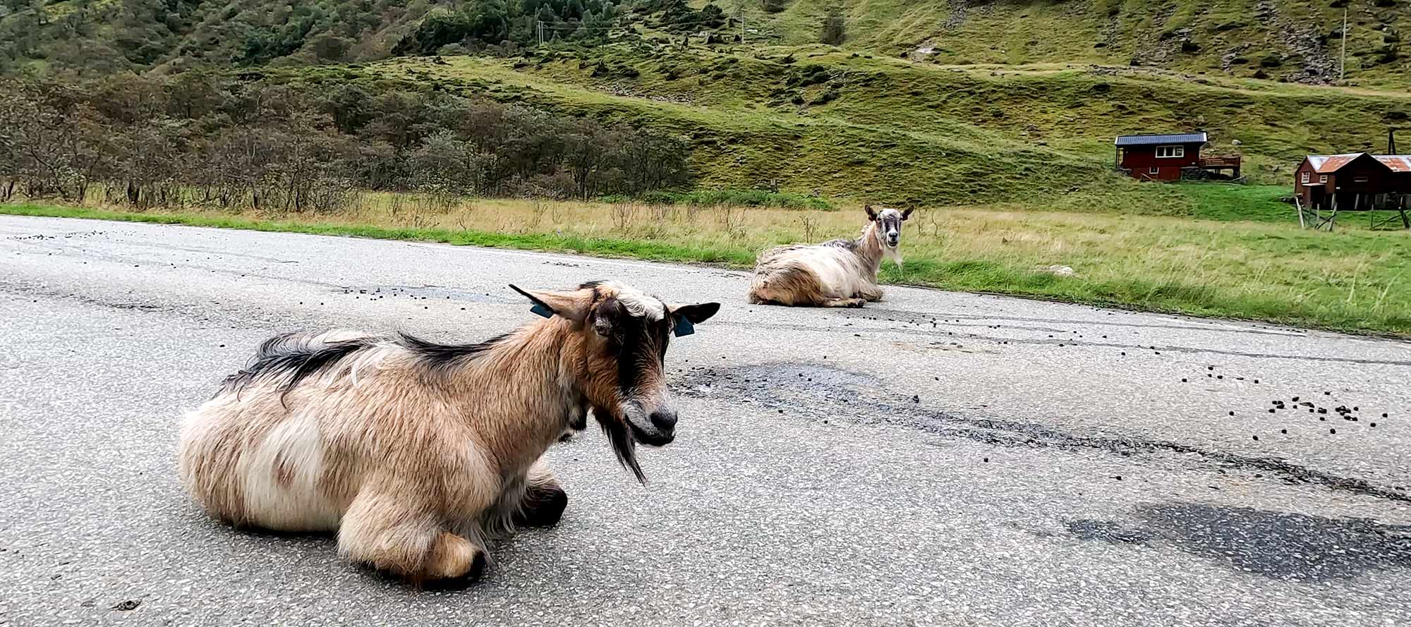 Auf dem Rückweg liegt wieder eine Horde Ziegen auf dem Weg herum.