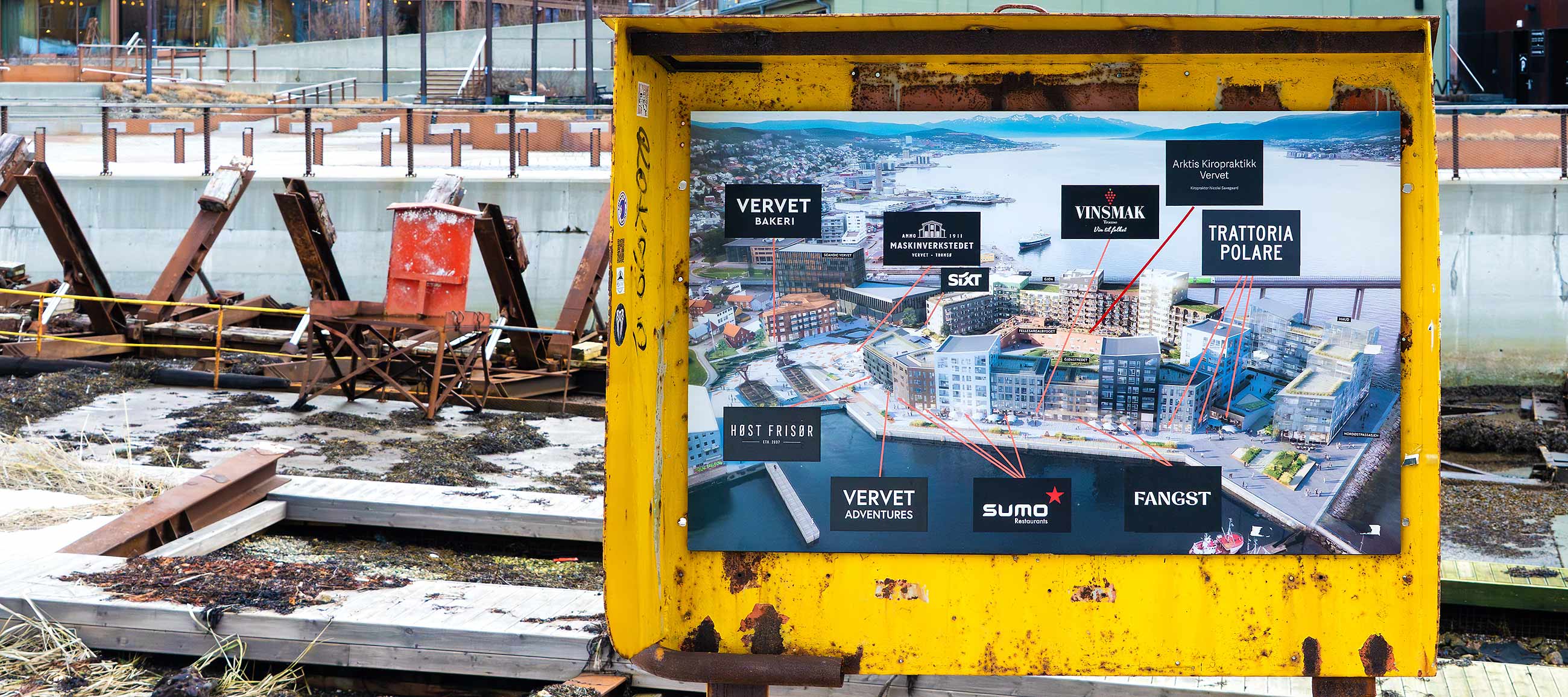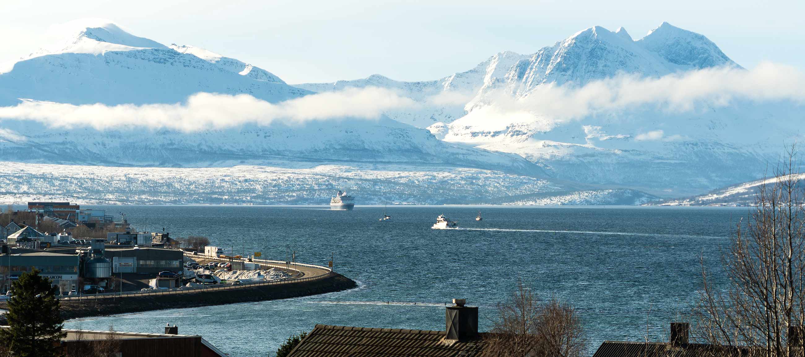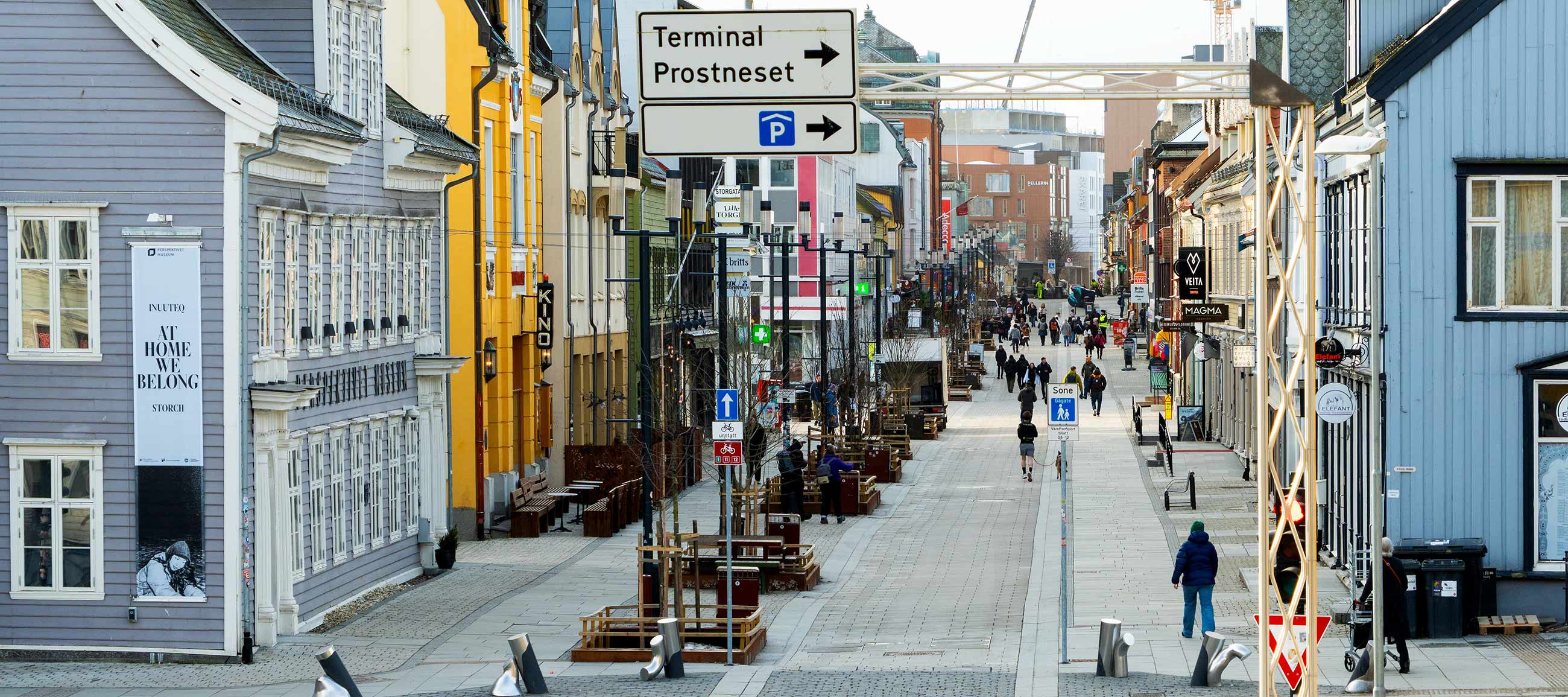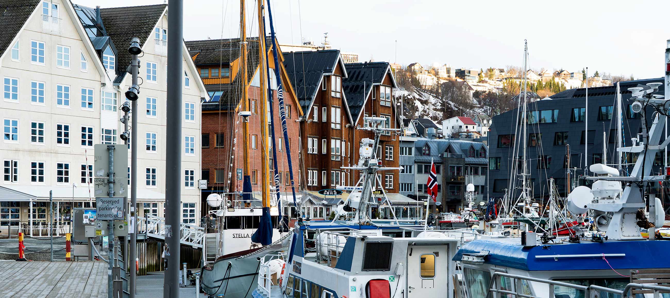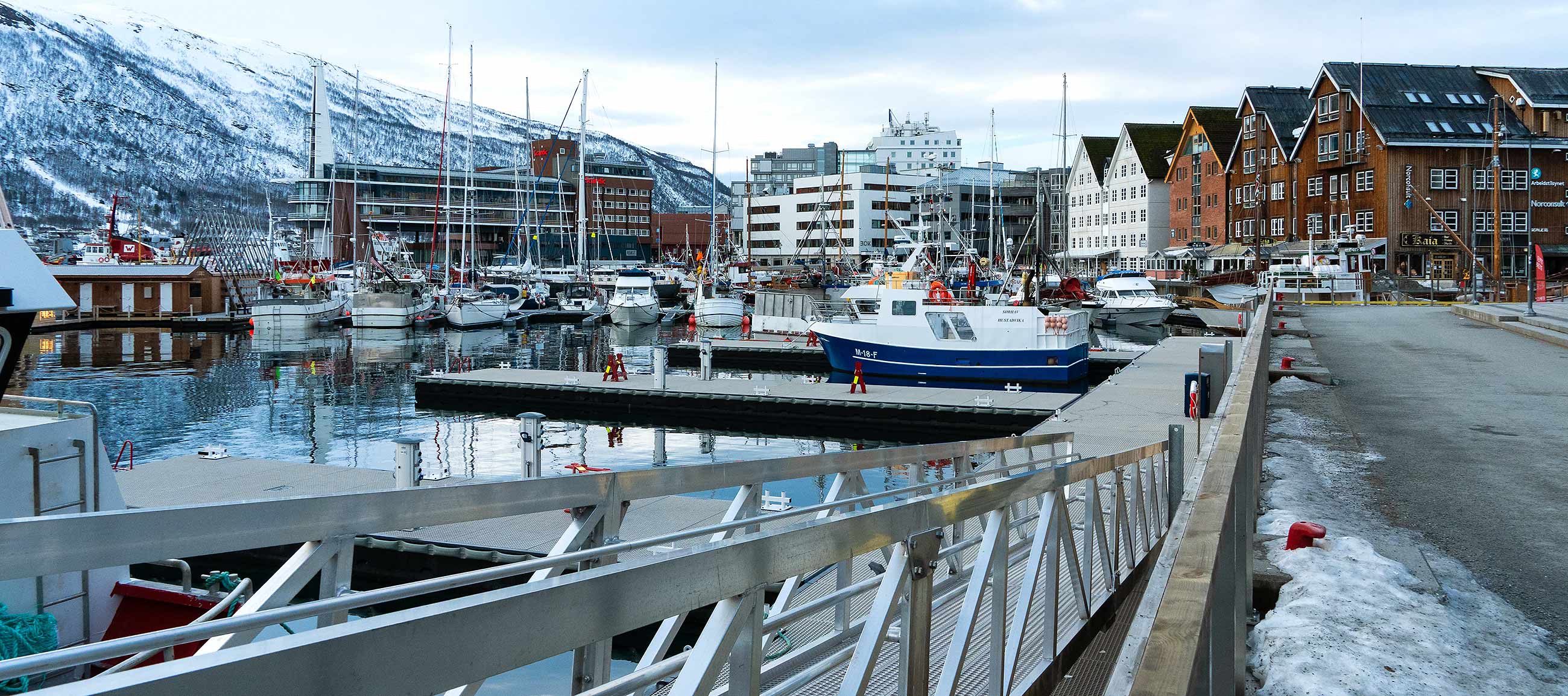 Beginnend im Süden beim Strandtorget und dann nach Norden bis zur Tromsøbrua.