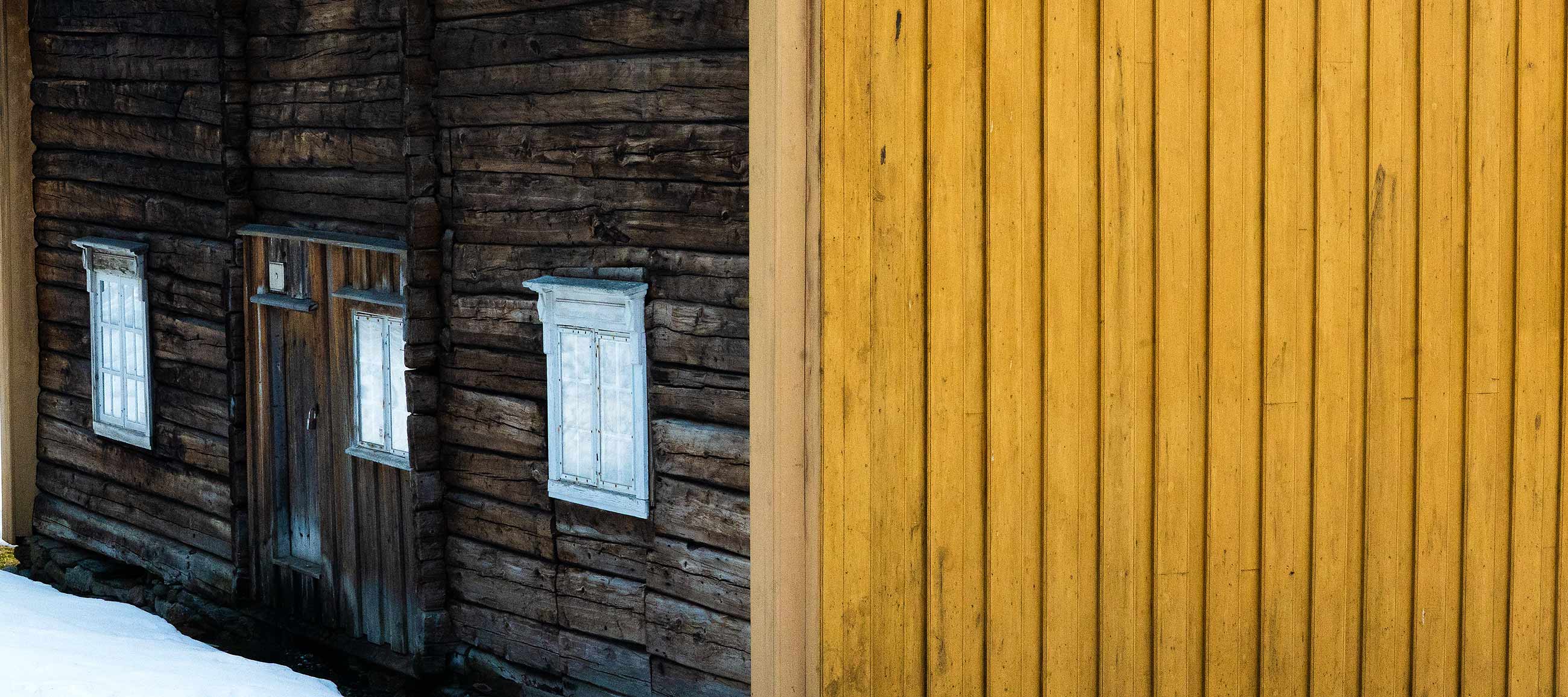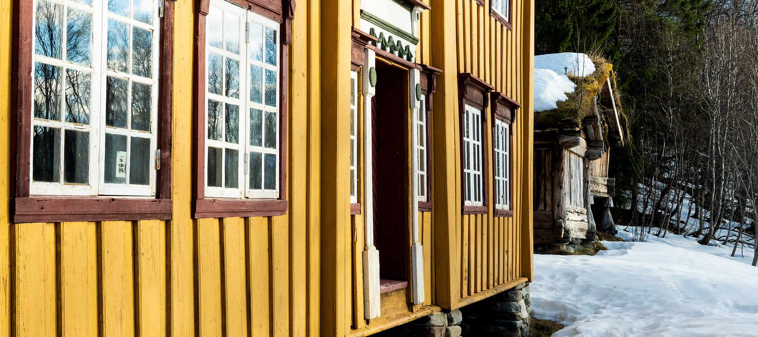 Etwas weiter die Straße entlang das Museumsgehöft Mortengården, ich versinke in 30 cm tiefem Schnee, umkreise die Häuschen.