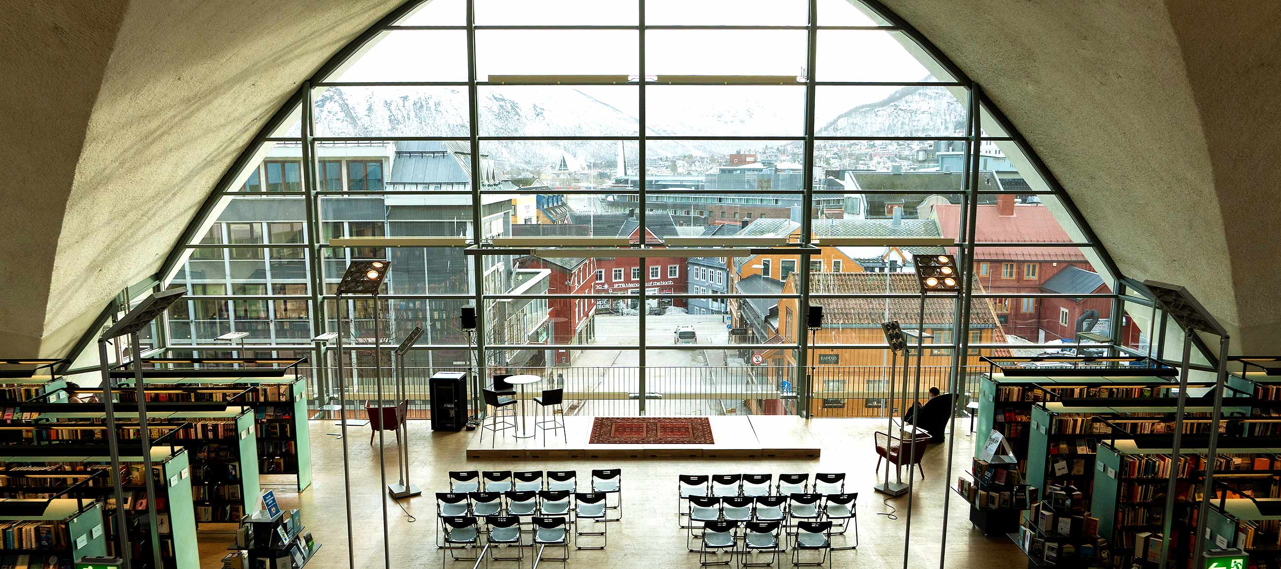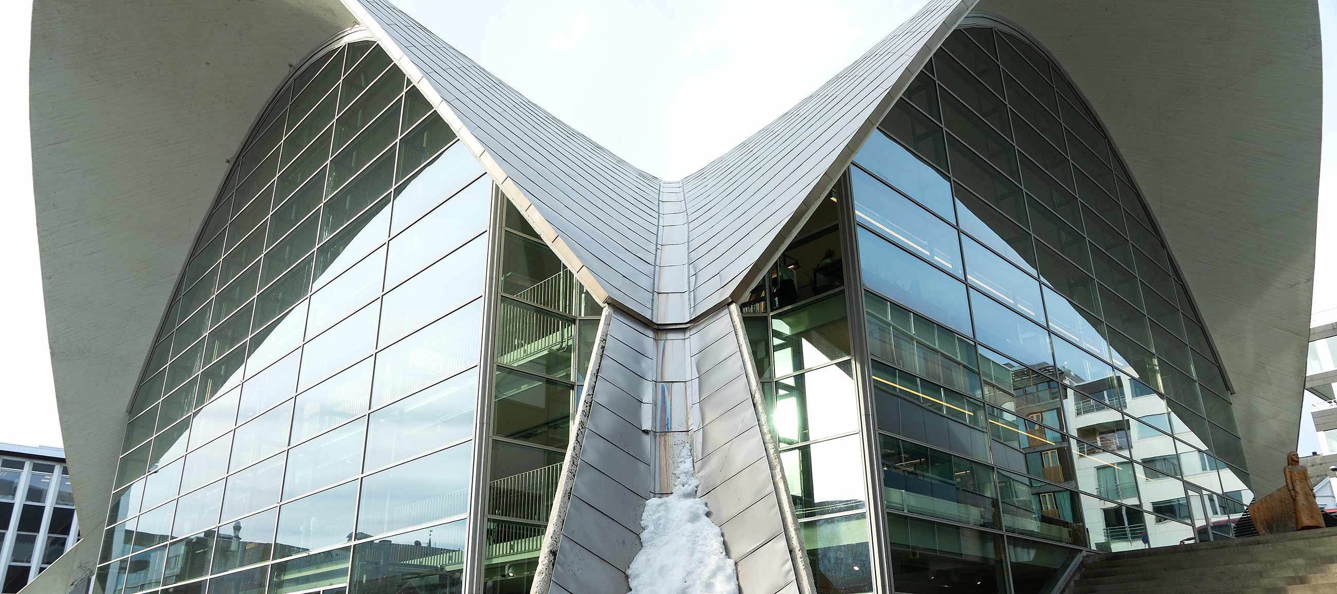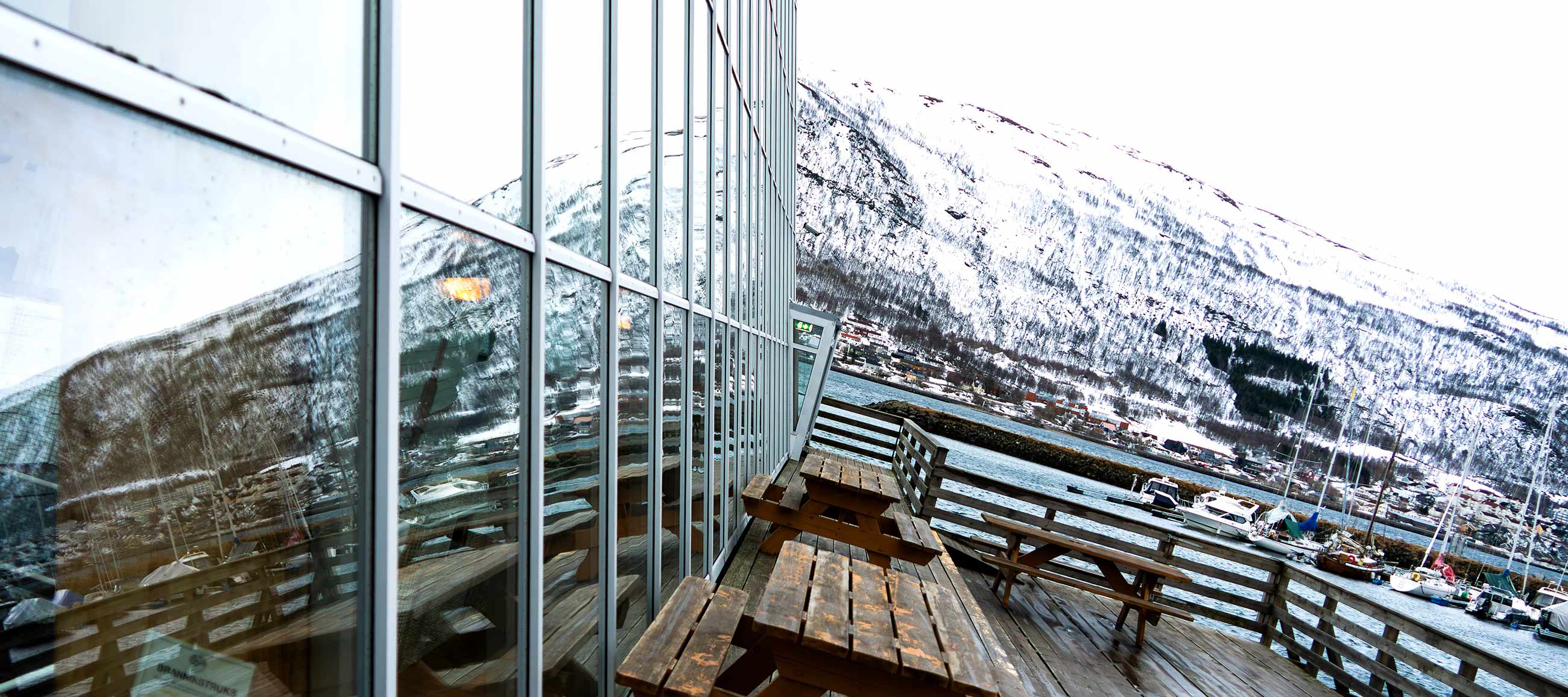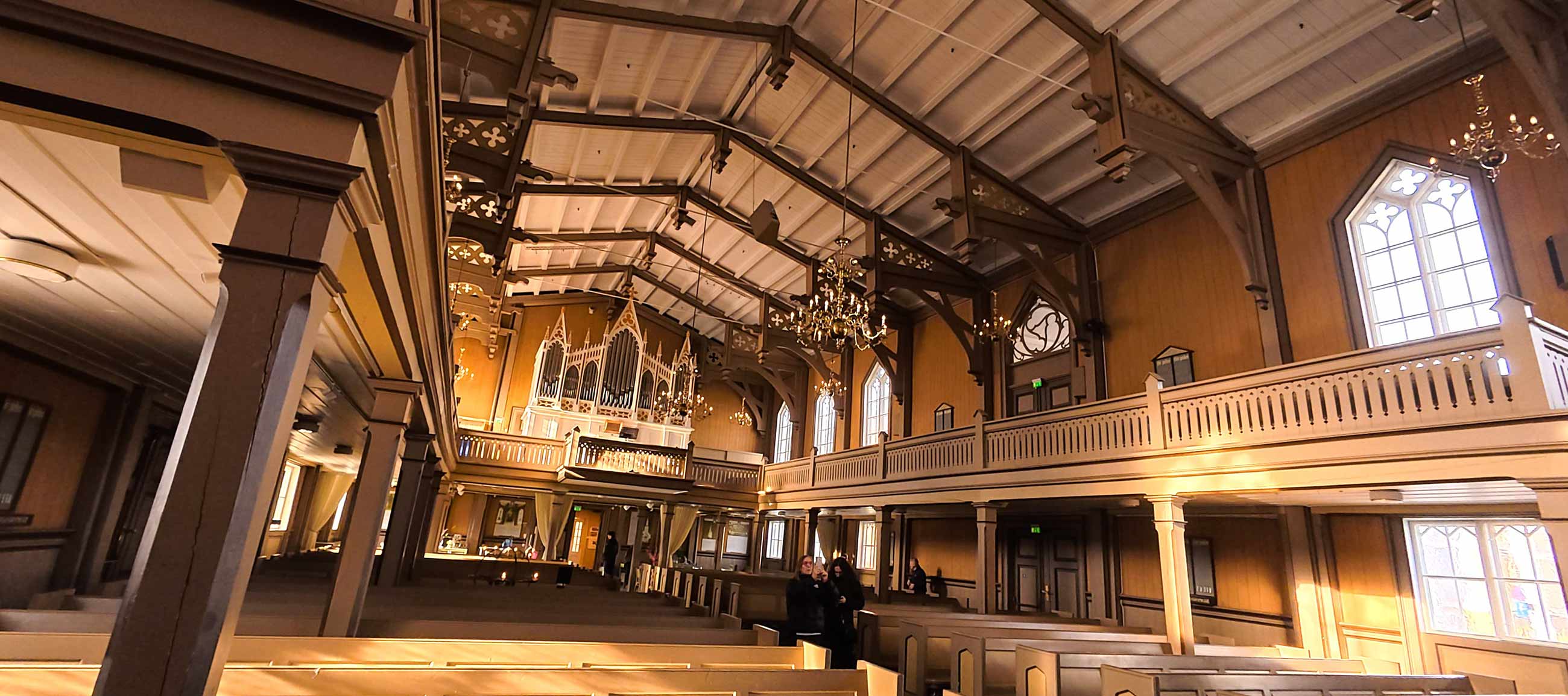 Das ist mal ganz was anderes. Alles aus Holz, alles strahlt in warmen Farben und ist viel gemütlicher als das moderne Gegenstück auf der anderen Fjordseite.