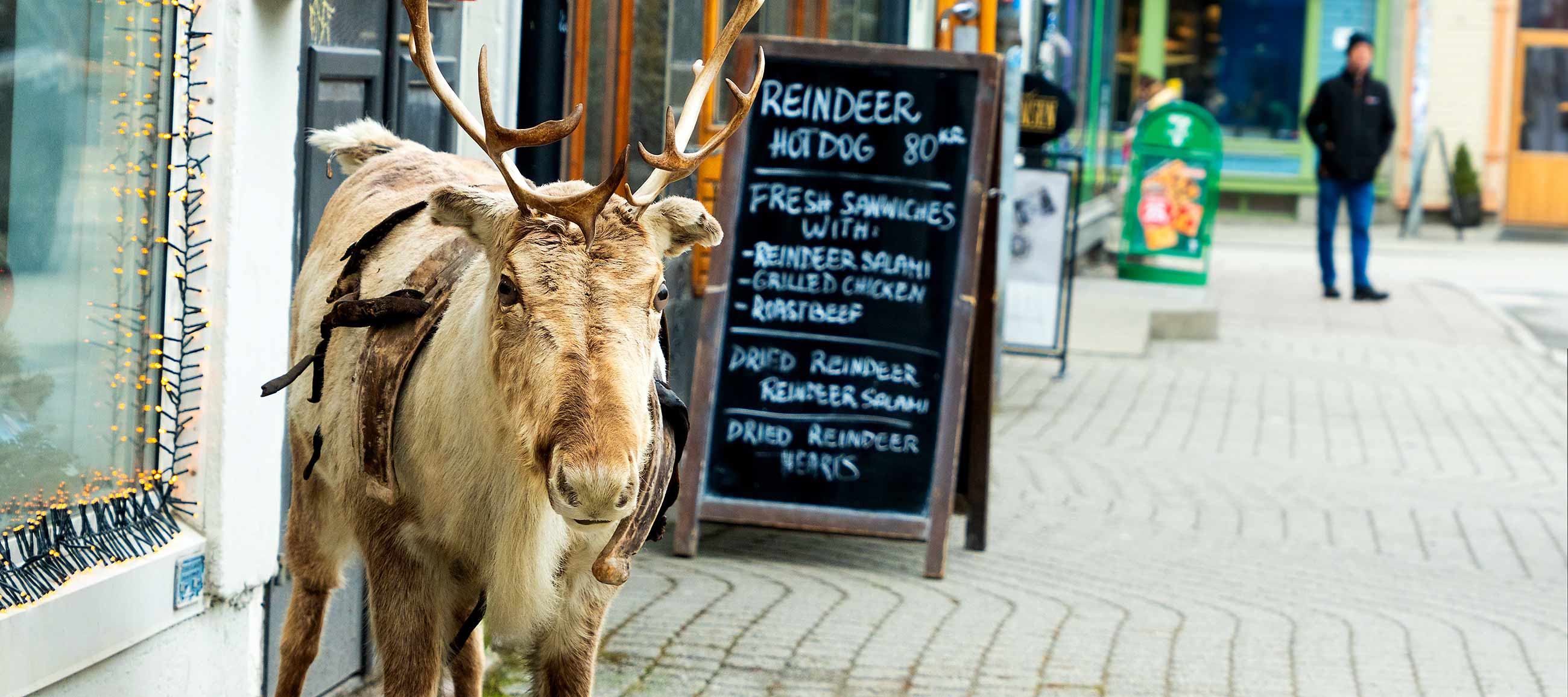 Ich kaufe eine Rentier-Tasse, eine Tüte Espresso. Dann mach ich erst einmal Pause.