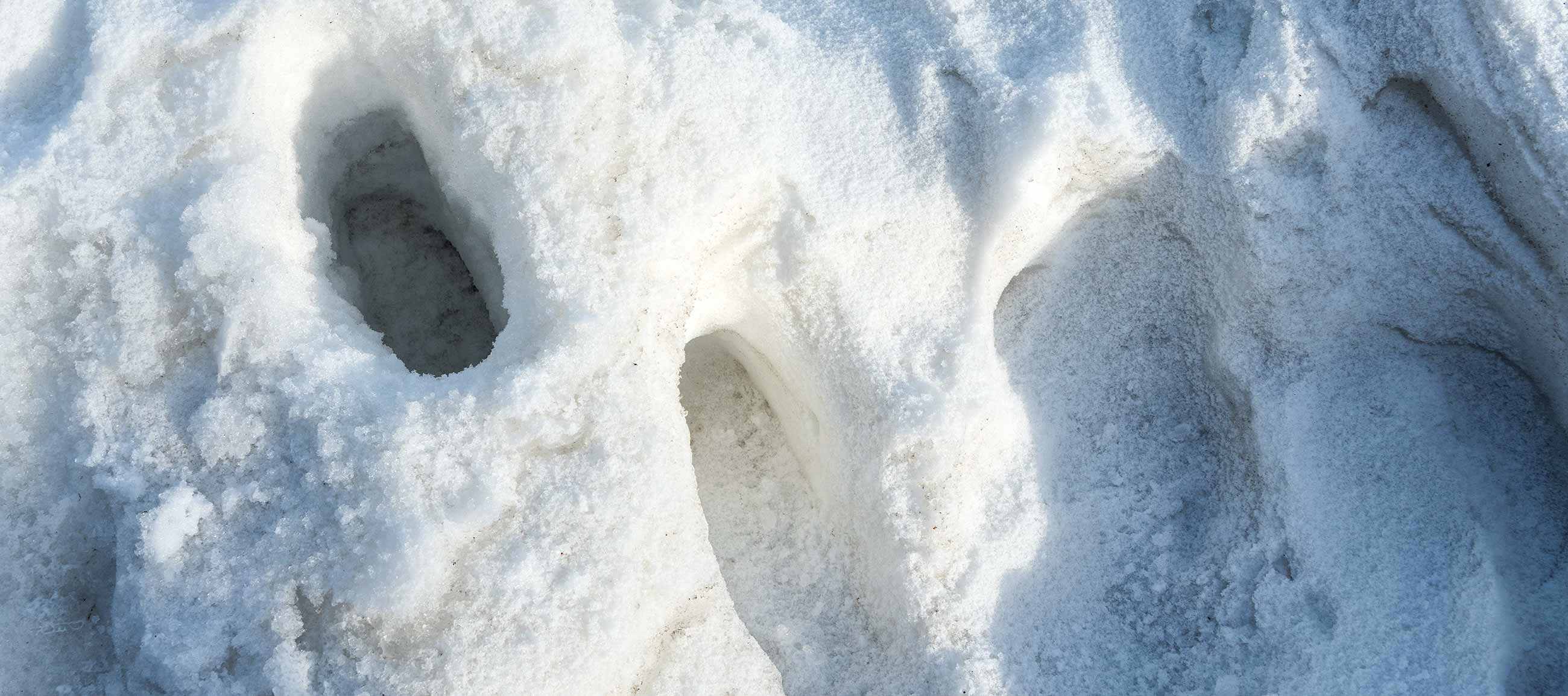 See und Sumpf sind unter Schnee verborgen. Überall gibts Fußspuren und ich versinke mal eben bis zum Knie.