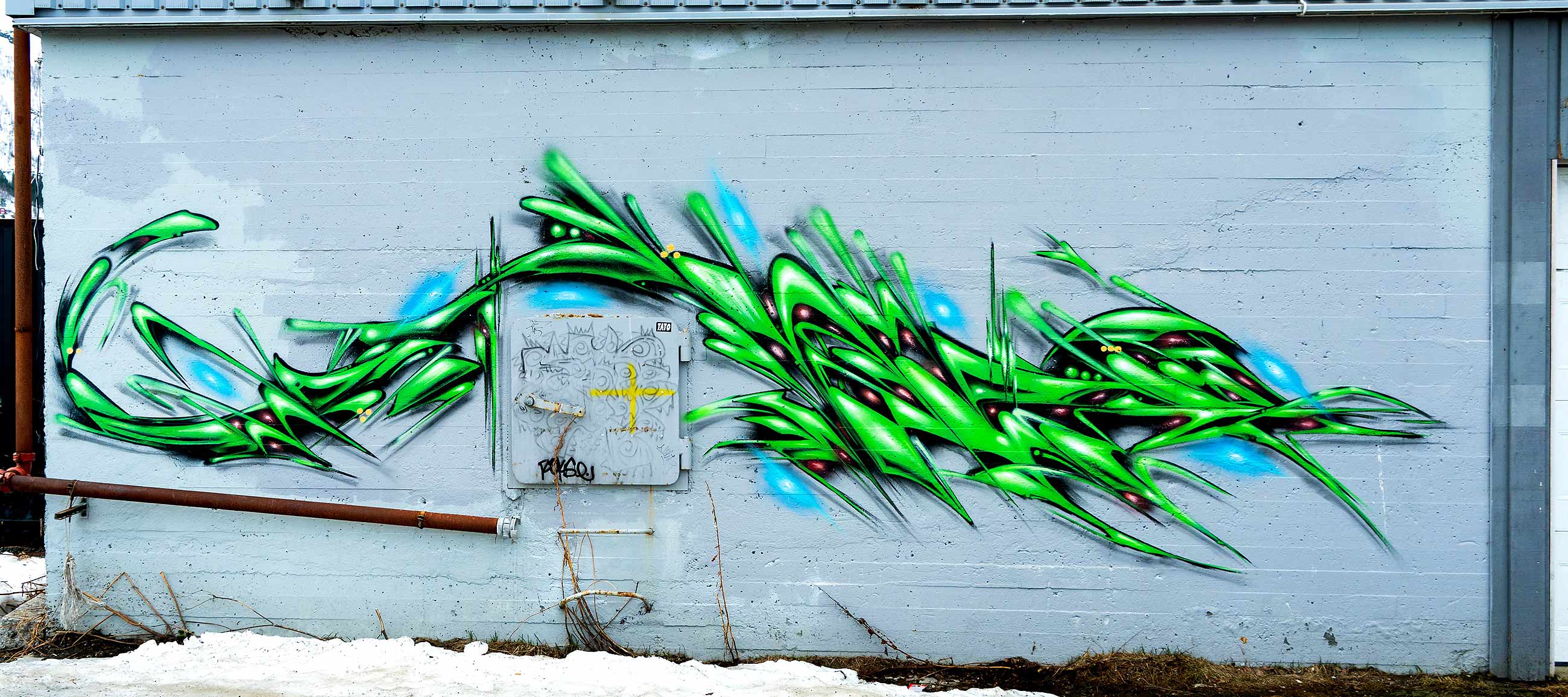 Der rundherum genial bemalt. Leider durch Schneehaufen bedingt nicht ganz zugänglich.