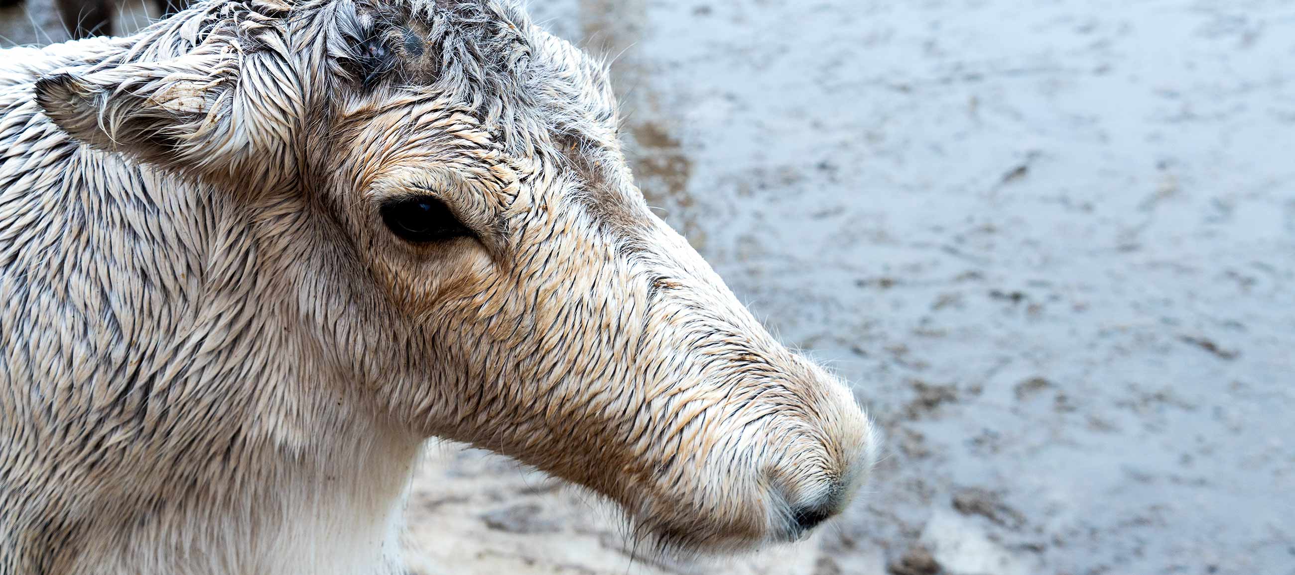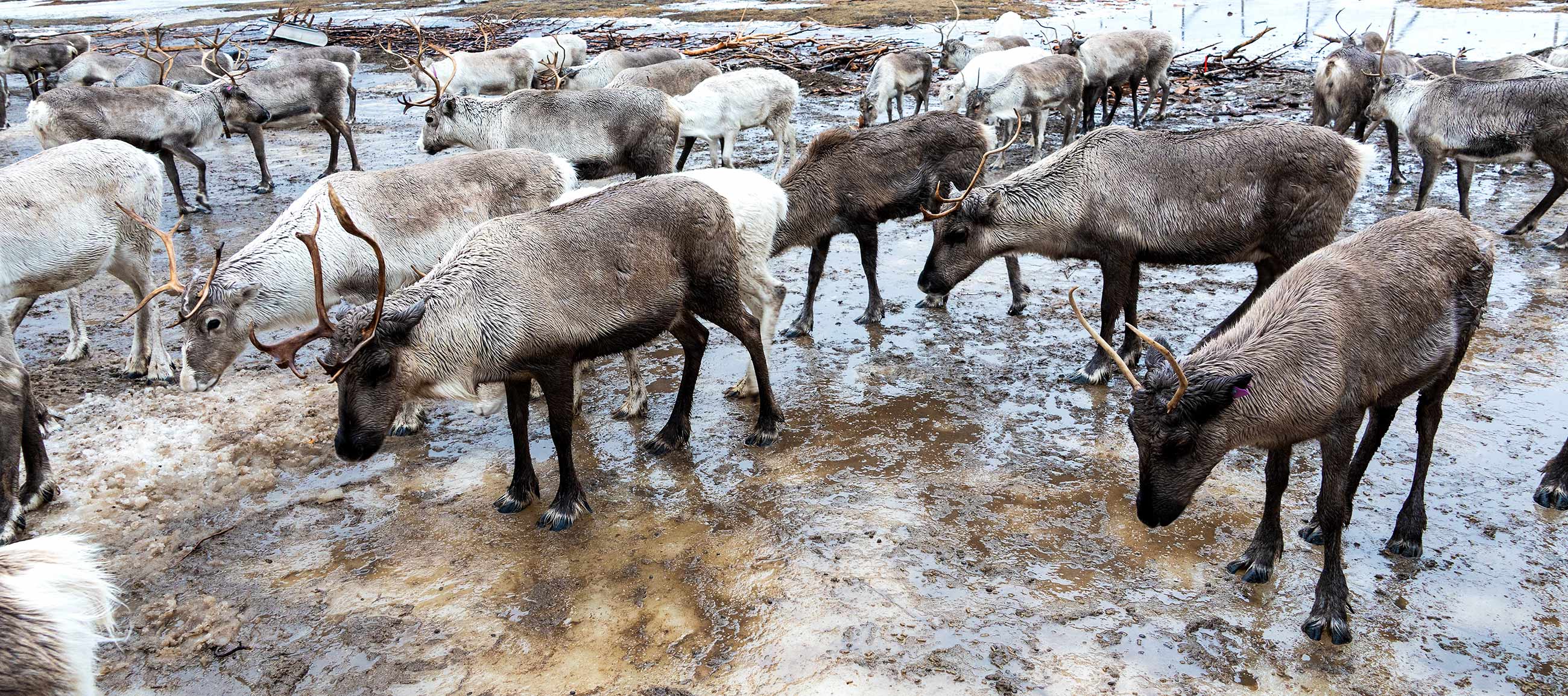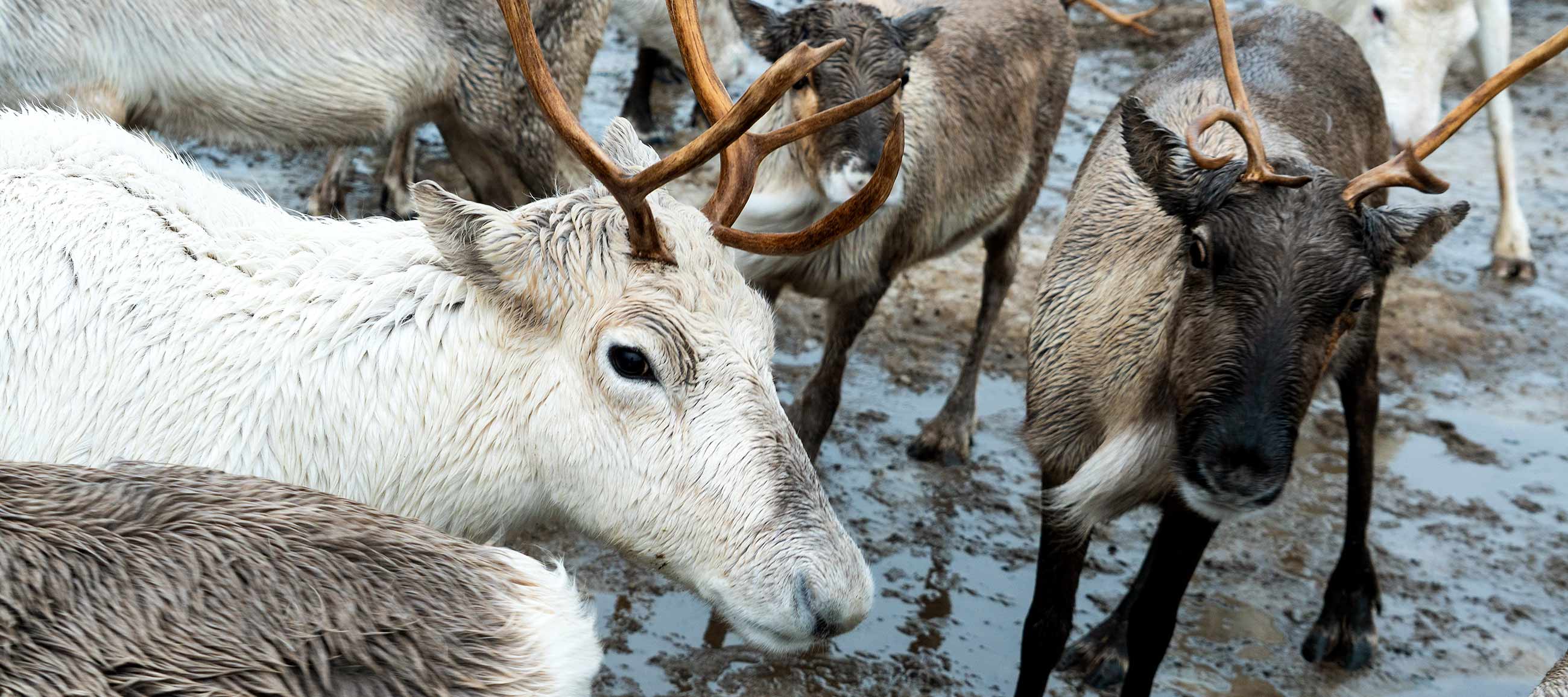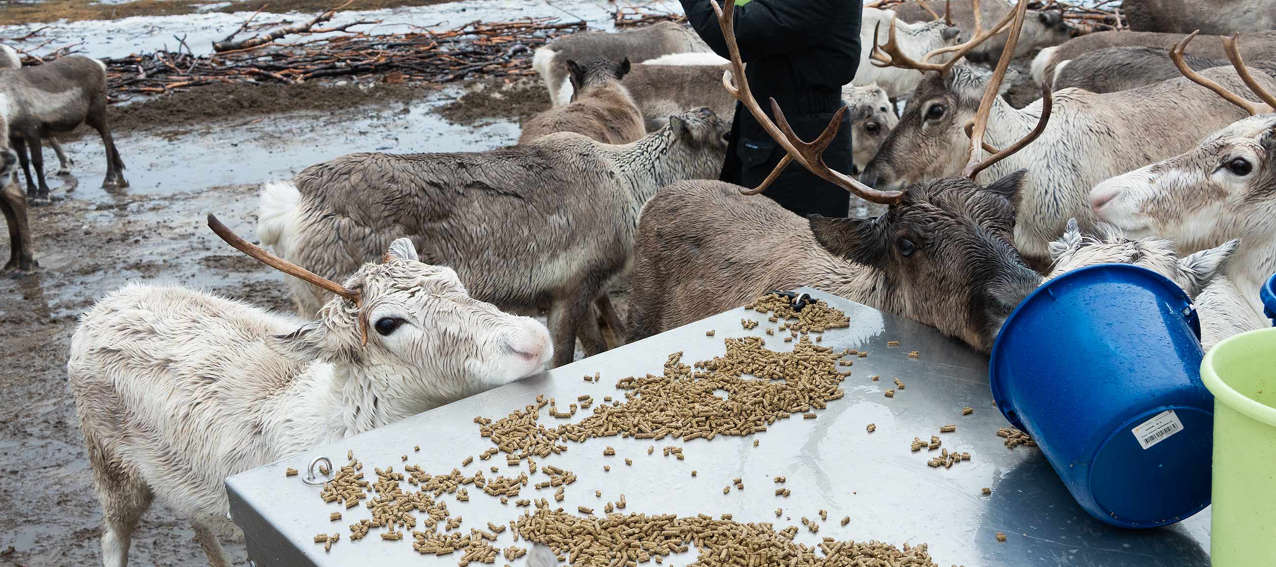 Eine kurze Weile im Sturm den Rentieren beim Futtern zuschauen.