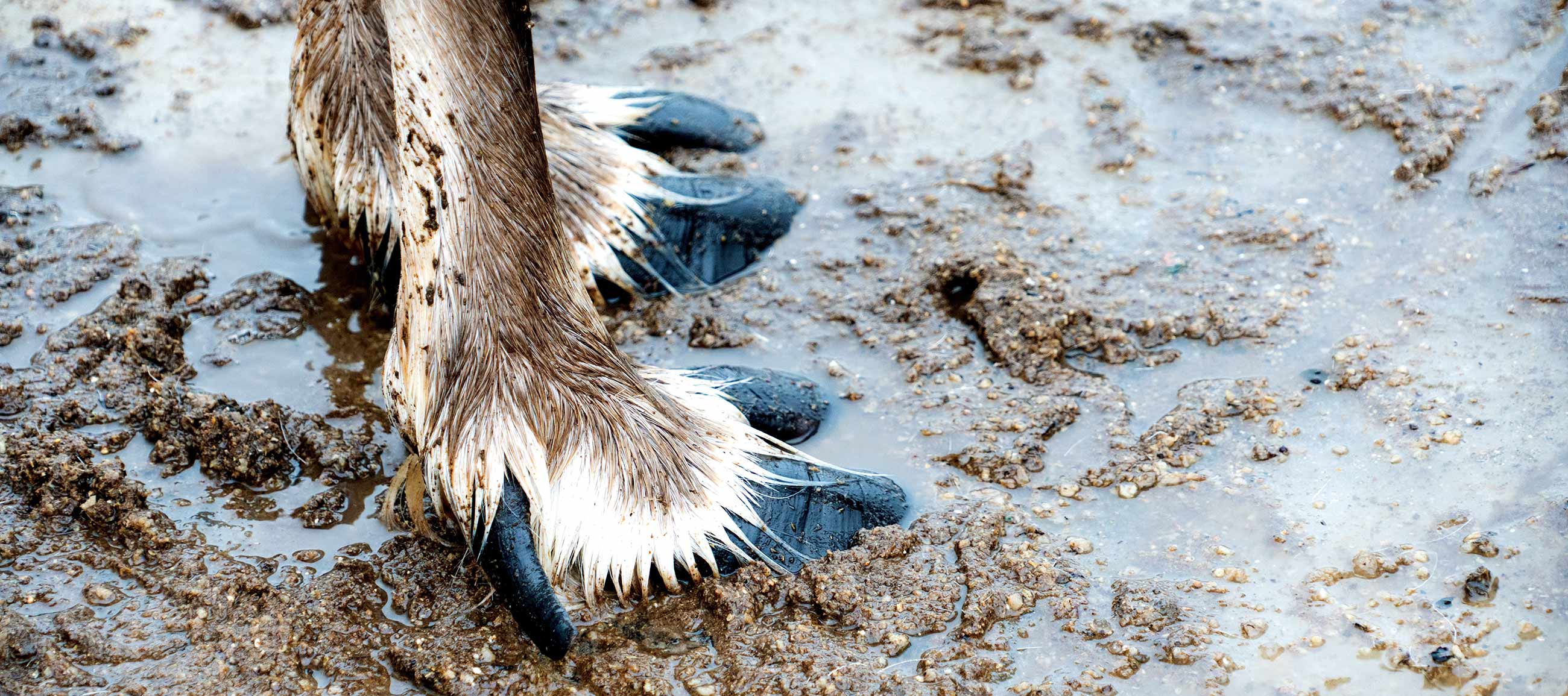 Es weht heftig. Der Regen macht den Schnee so richtig glitschig, er steht auf dem Eis, und wenn’s kein Eis gibt, in zentimeterdickem Matsch.