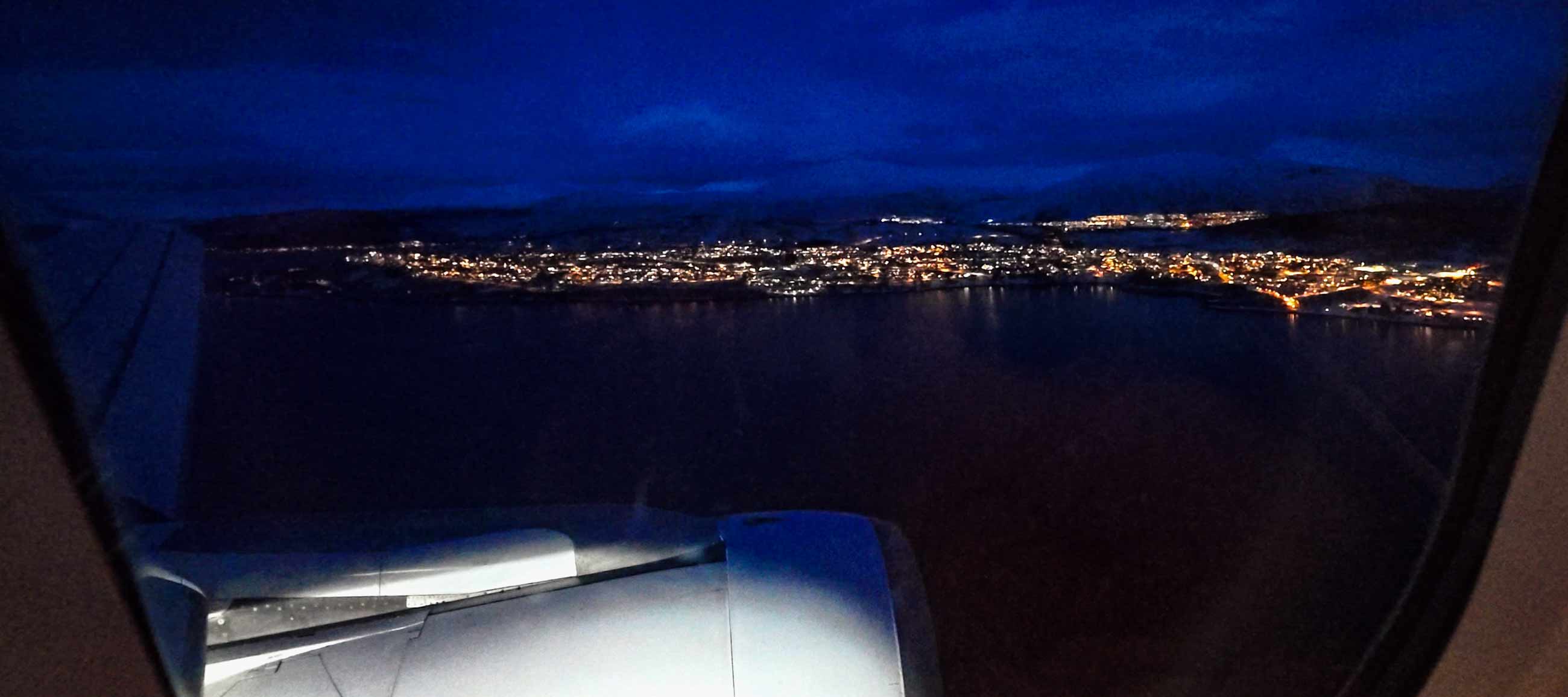 Das Flugzeug schafft es mit Rückenwind sogar zehn Minuten früher nach Tromsø.