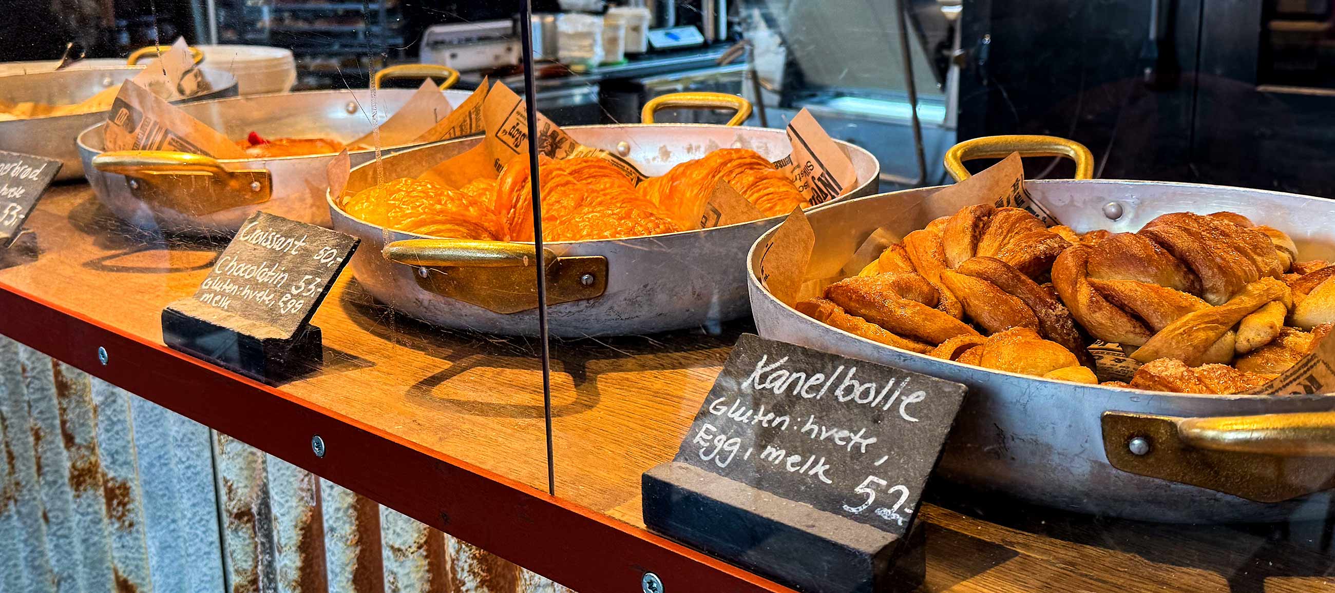 Ich trödel querbeet wieder zurück zum Strandtorget und zur Kaffebønna. Endlich Frühstück, warm und gemütlich mit Wienerbrød und Latte.