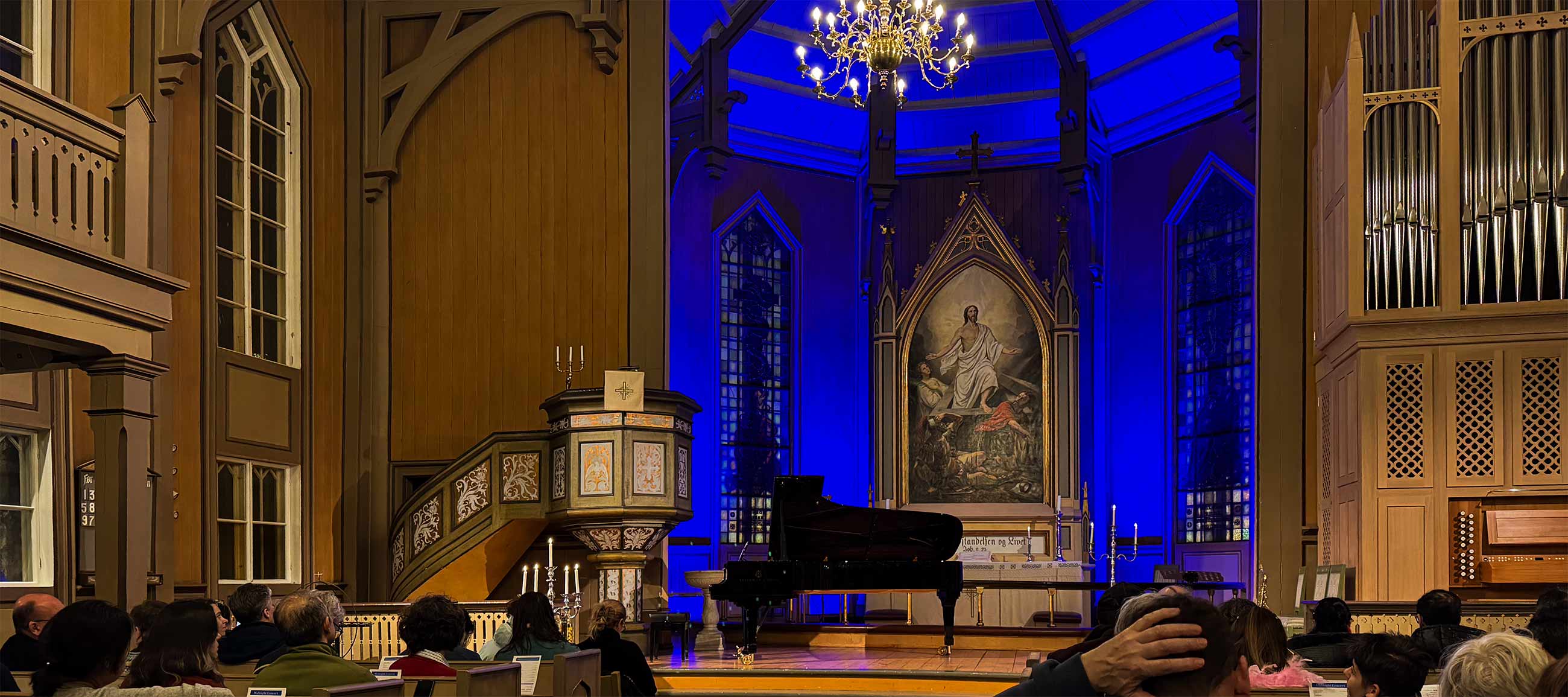 Abends gibt es eines der berühmten Mitternachtskonzerte, das um 23 Uhr beginnt und eine halbe Stunde norwegische Musik bietet.